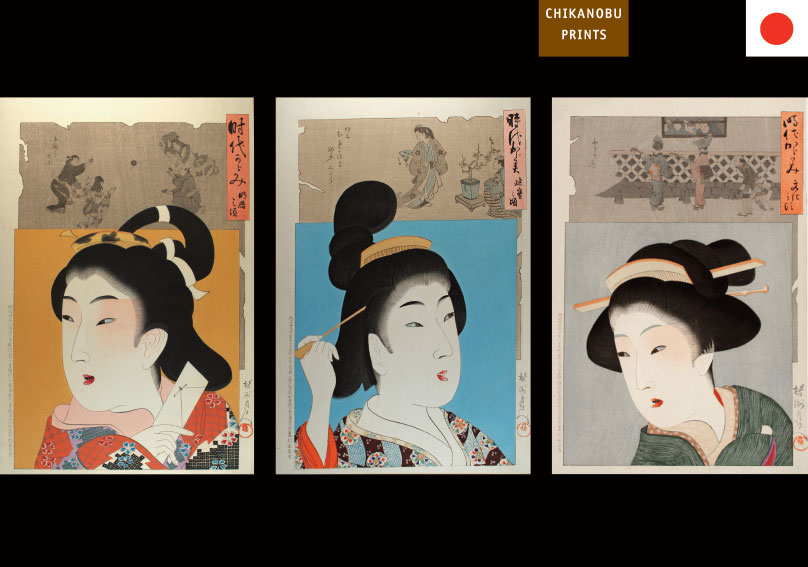 Three portraits from the series Jidai Kagami (1897).