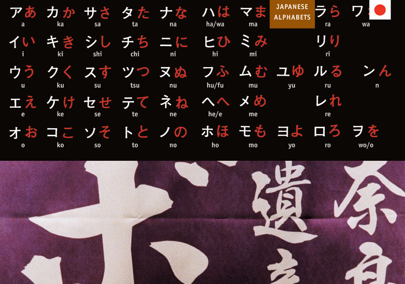 in red : the hiragana alphabet, for Japanese words. In white: the katakana alphabet for foreign words and names.