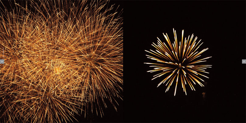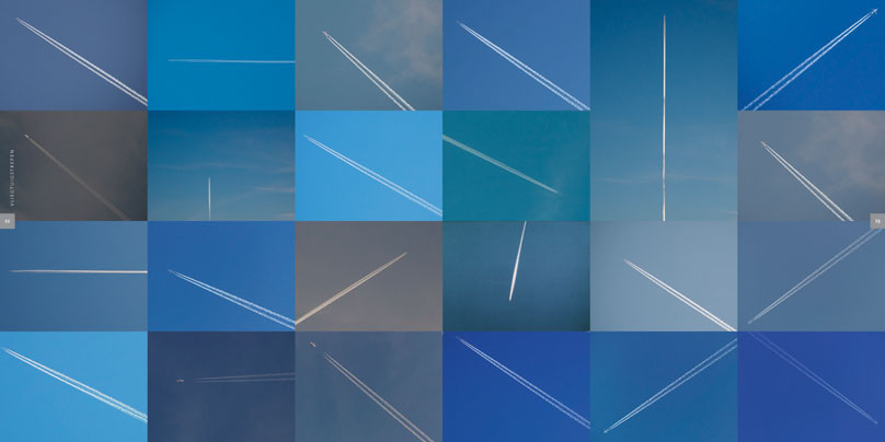 vliegtuigstrepen en vuurwerk tot aan de sterren