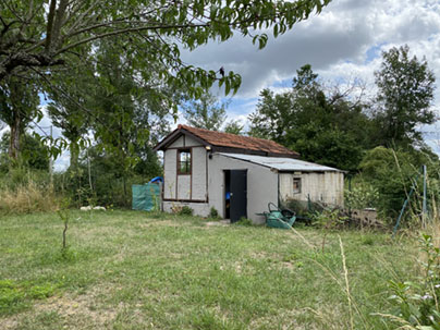 A F M E T I N G E N : Het huisje zelf meet 6 x 6 meter, binnenzijde 5 x 5 meter, de muren zijn dus ongeveer 50 cm dik. De tuin is ongeveer 15 x 40 m. groot. Verder zijn er nog twee stukjes terrein, bij elkaar is alles ongeveer 1350 m2 grond. I N D E L I N G : Begane grond: Elektra: de leidingen zijn goed, de stoppenkast is oud en beperkt. Eerste etage: Zolder van 5 x 5 m. Kelder 5 x 5 m. Wij kiezen er soms voor om de kelder leeg te pompen (dan blijft er wel 0,5-1,0 cm water in staan), soms om het water er in te laten. Dan heb je bij extreme droogte (ook al een paar keer meegemaakt) een extra waterbuffer voor de planten en de bomen. Er is een schuur in originele SNCF-prefab-bouw. De septic tank van 3000 liter, van beton, is aangelegd in 2006, recent goedgekeurd volgens de laatste normen. Er zijn wat werkzaamheden die gedaan zouden kunnen worden: