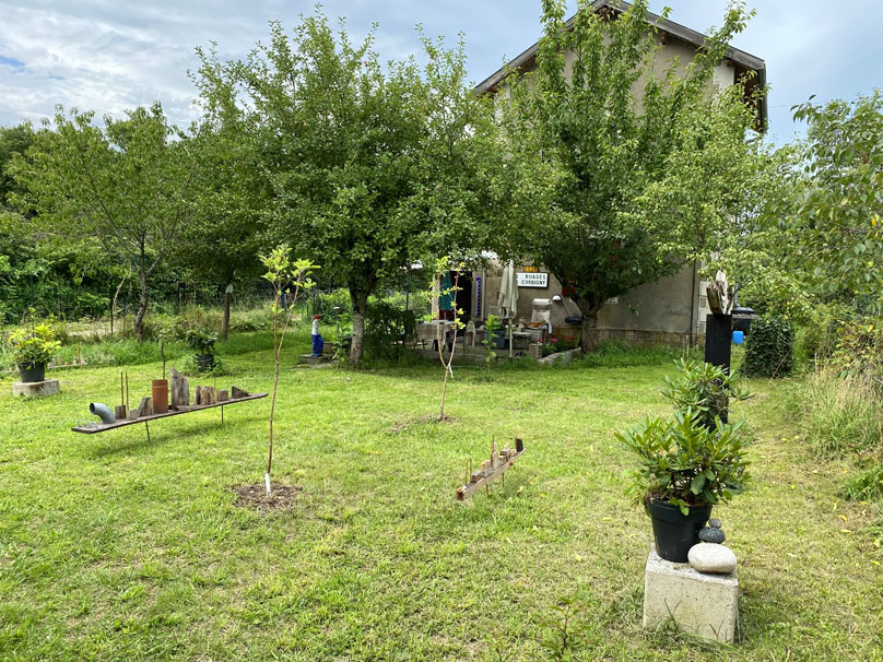Het huisje heeft een flinke tuin (uitzonderlijk bij spoorweghuisjes) en diverse stukjes terrein, totaal 1350 vierkante meter (zie de luchtfoto). Het betegeld terras op het zuiden (5 x 5 m.) ligt beschut: naast het huis ligt een klein bos. De moderne, betonnen septic tank is recent volgens de laatste normen goedgekeurd. De spoorlijn is sinds 1970 niet meer in gebruik. De bakker komt aan de deur. De Maas, met een strandje waar je kunt zwemmen, ligt op één kilometer. Vorig jaar is (tegen onze zin uiteraard) een gsm-mast naast het huis geplaatst. Wij verkopen het huis omdat wij recent in de Belgische Kempen zijn gaan wonen in een schitterend huis met grote tuin en uitzicht op de akkers en bossen. Dus wij hebben geen tweede huisje meer nodig, het is nu elke dag vakantie. |